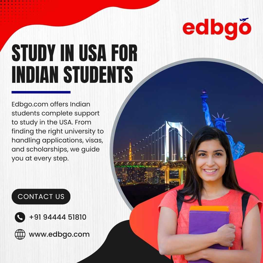 Edbgo.com offers Indian students complete support to study in the USA. From finding the right university to handling applications, visas, and scholarships, we guide you at every step. Understand the admission process, student life, and career opportunities abroad. Achieve your dreams of international education with tailored counseling from Edbgo.com. Make studying in the USA simple, efficient, and successful with our expert guidance designed especially for Indian students.